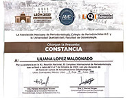 Asociación Mexicana de Periodontología, Colegio de Periodoncistas A.C. y La Universidad Quetzalcoatl, Facultad de Odontología, XLI Reunión Nacional, 33 Congreso Internacional de Periodontología, León, Guanajuato.